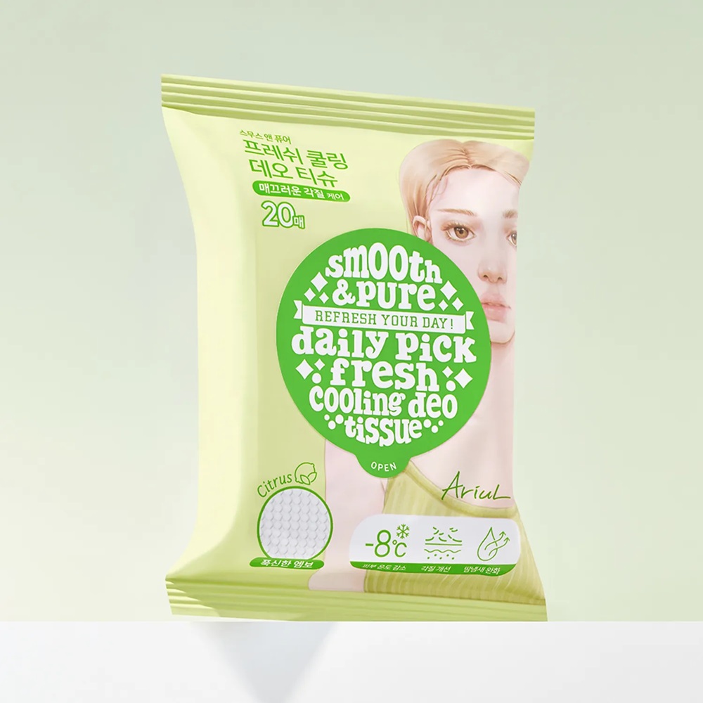 1. Luati un servetel deodorant Ariul si stergeti usor zonele transpirate si lipicioase (gat, brate, picioare, subrat etc.), fara a include fata.