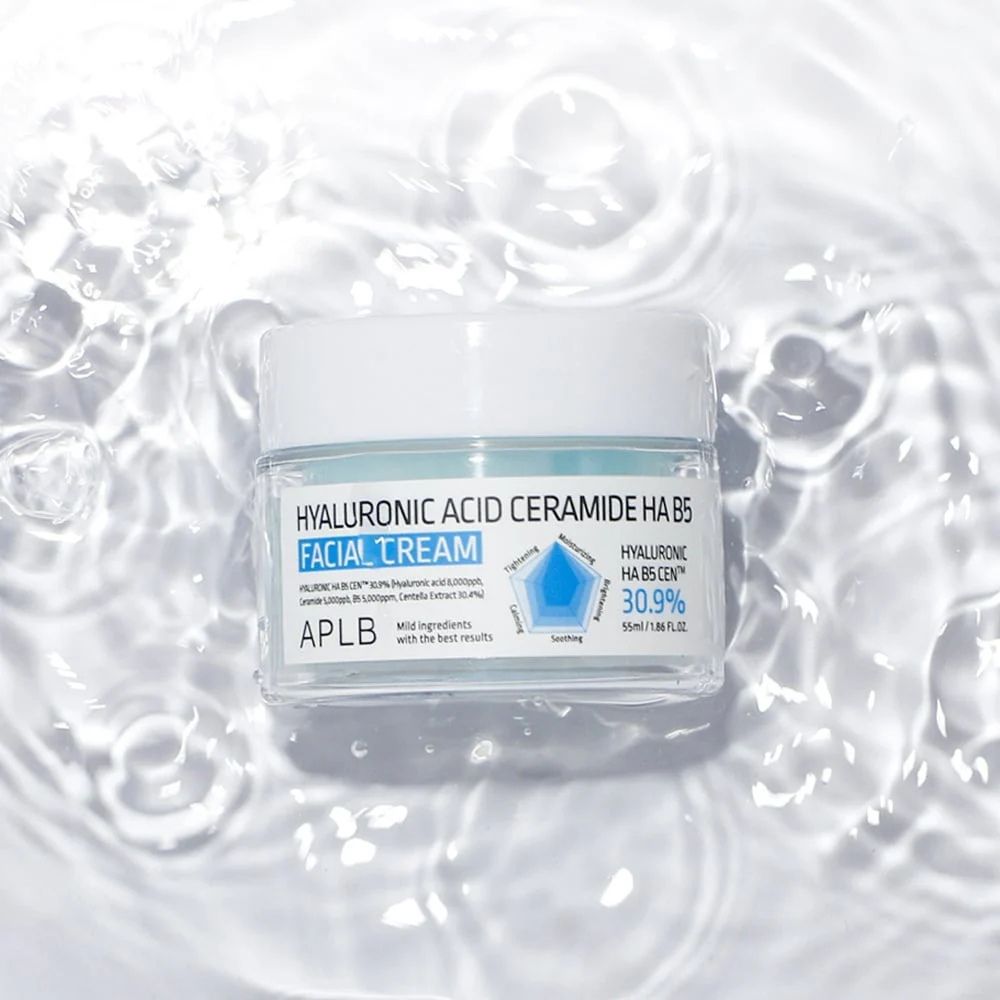 - Aplb Hyaluronic Acid Ceramide HA B5 Facial Cream este o cremă intens hidratantă care oferă reîncărcare profundă a umidității și ajută la întărirea barierei cutanate;