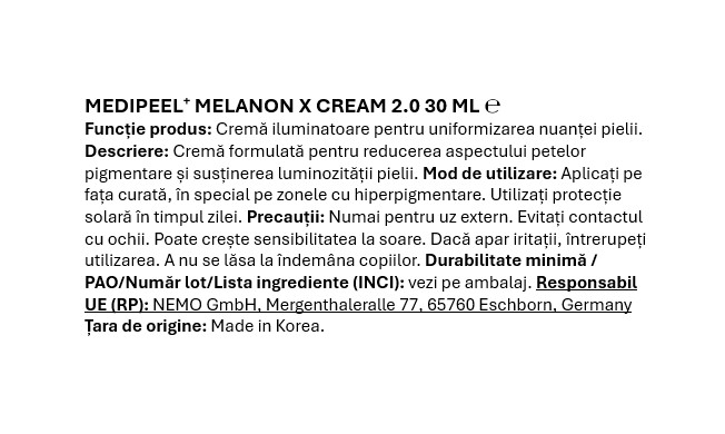 - formula este conceputa pentru a sustine procesul de uniformizare a nuantei pielii si pentru a oferi un aspect mai luminos si mai clar;