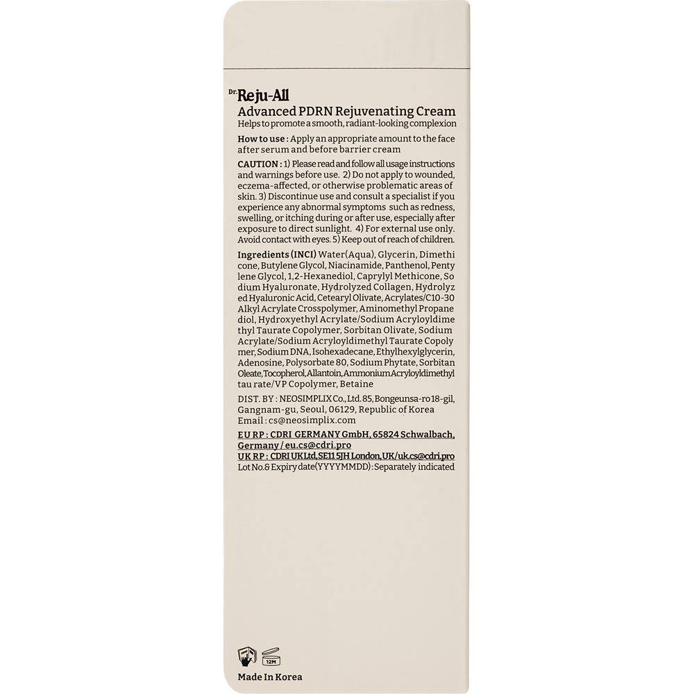 Water (Aqua), Glycerin, Dimethicone, Butylene Glycol, Niacinamide, Panthenol, Pentylene Glycol, 1,2-Hexanediol, Caprylyl Methicone, Sodium Hyaluronate, Hydrolyzed Collagen, Hydrolyzed Hyaluronic Acid, Cetearyl Olivate, Acrylates/C10-30 Alkyl Acrylate Crosspolymer, Aminomethyl Propanediol, Hydroxyethyl Acrylate/Sodium Acryloyldimethyl Taurate Copolymer, Sorbitan Olivate, Sodium Acrylate/Sodium Acryloyldimethyl Taurate Copolymer, Sodium DNA, Isohexadecane, Ethylhexylglycerin, Adenosine, Polysorbate 80, Sodium Phytate, Sorbitan Oleate, Tocopherol, Allantoin, Ammonium Acryloyldimethyltaurate/VP Copolymer, Betaine.