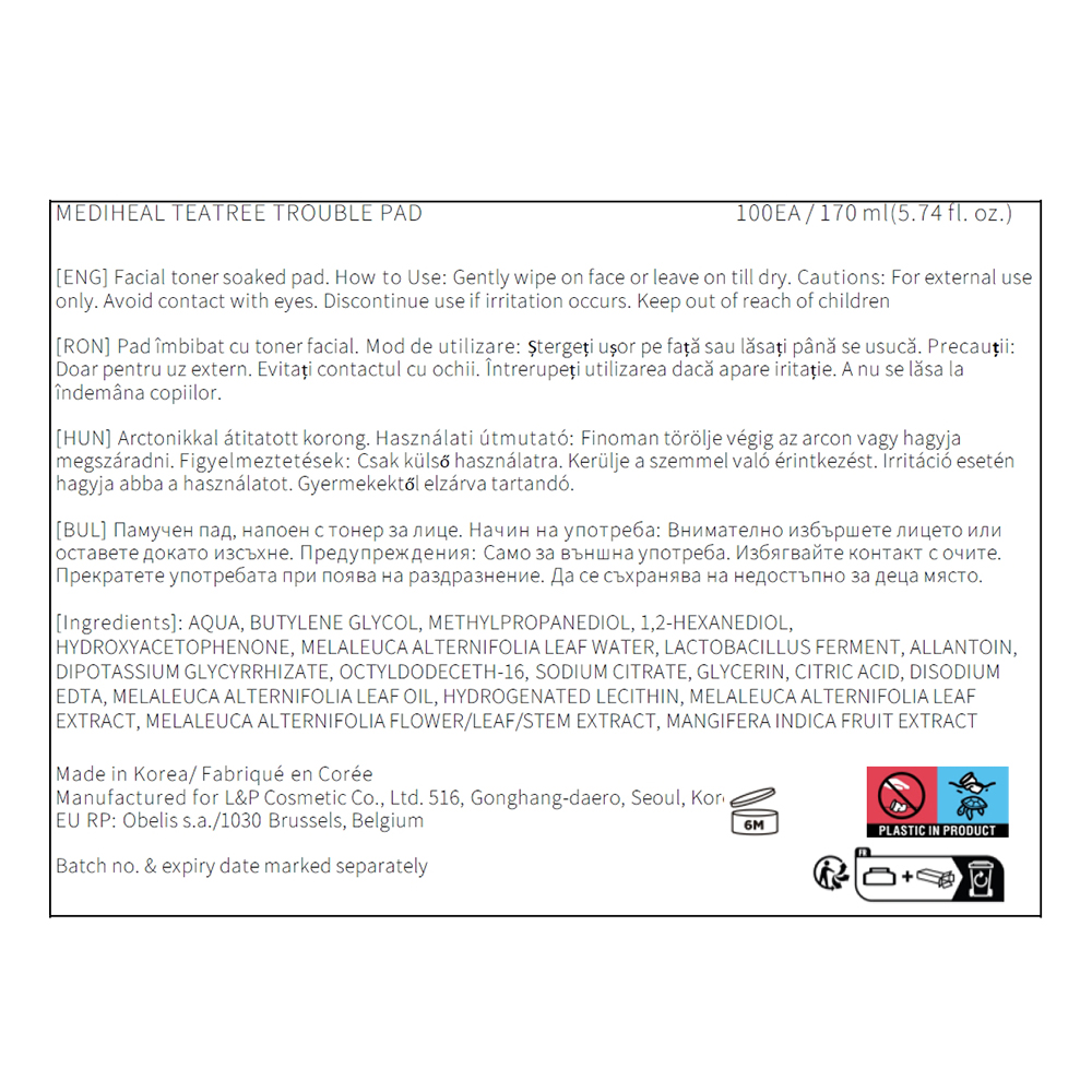 Dischete tonice, calmante, Teatree Trouble Pad, 100 bucati, Mediheal [8809615058671]