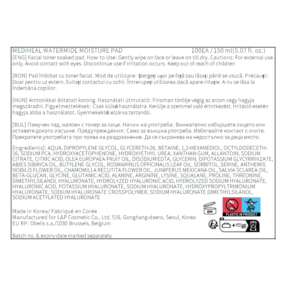Dischete tonice hidratante Watermide Moisture Pad, 100 bucati, Mediheal [8809615058695]