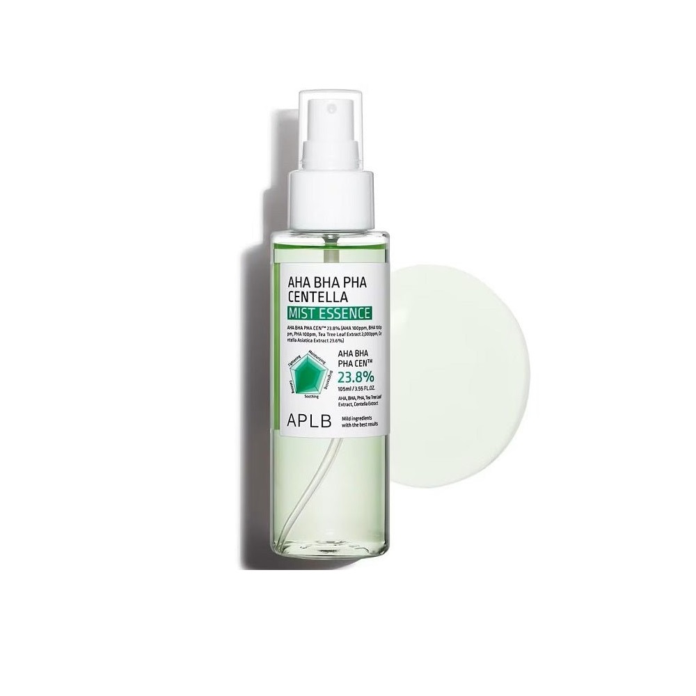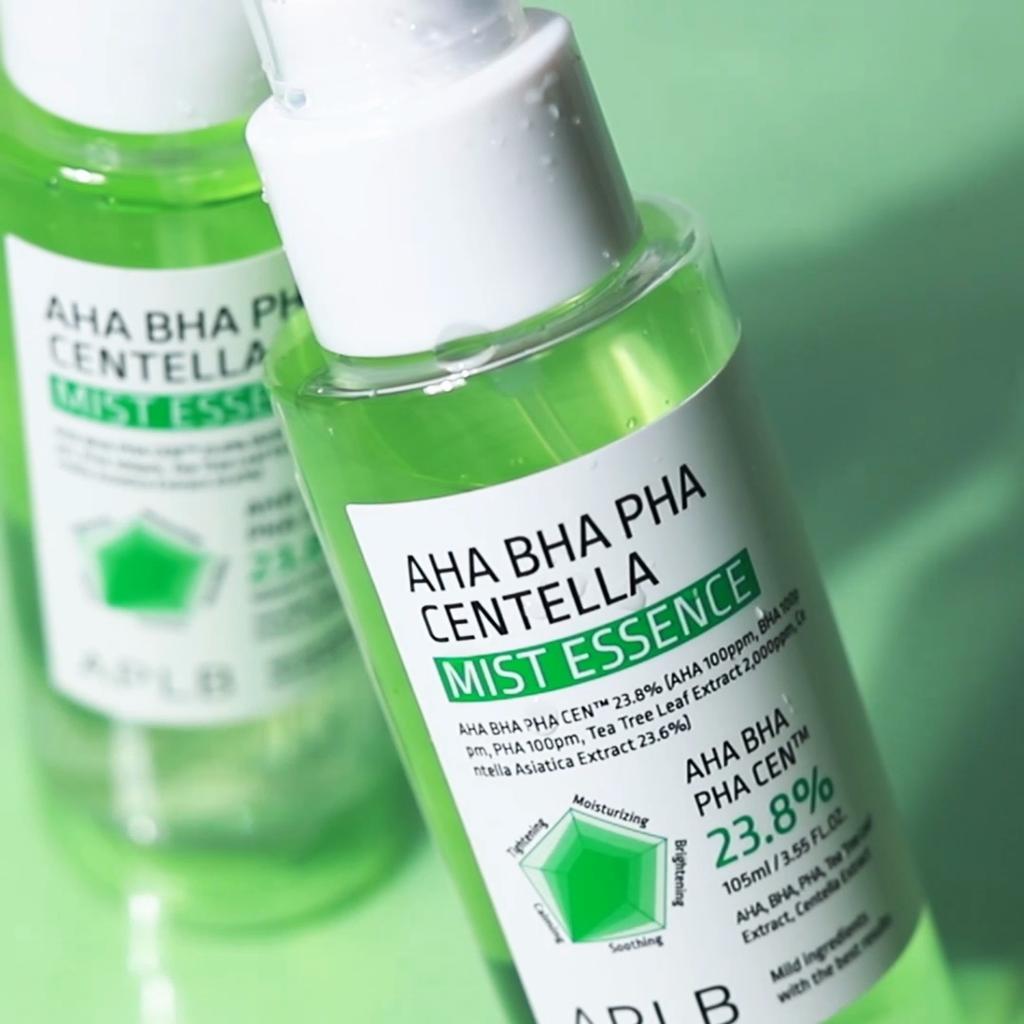 - Aplb AHA BHA PHA Centella Mist Essence este o esență sub formă de mist, multifuncțională, care combină exfoliere blândă, hidratare intensă și calmare;