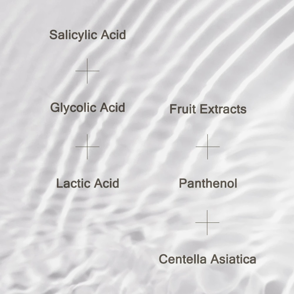 Water, Glycerin, Sodium Lactate, Butylene Glycol, Pentylene Glycol, PEG-60 Hydrogenated Castor Oil, Glycolic Acid (0.5%), Lactic Acid (0.3%), Ethylhexylglycerin, Salicylic Acid (0.02%), Disodium EDTA, Citrus Aurantium Dulcis (Orange) Fruit Water, Portulaca Oleracea Extract, 1,2-Hexanediol, Aloe Barbadensis Leaf Extract, Maltodextrin, Centella Asiatica Extract, Citrullus Lanatus (Watermelon) Fruit Extract, Houttuynia Cordata Extract, Salvia Hispanica Seed Extract, Solanum Lycopersicum (Tomato) Fruit Extract, Illicium Verum (Anise) Fruit Extract, Punica Granatum (Pomegranate) Extract, Dipotassium Glycyrrhizate, Caprylyl Glycol, Fragrance, Limonene.