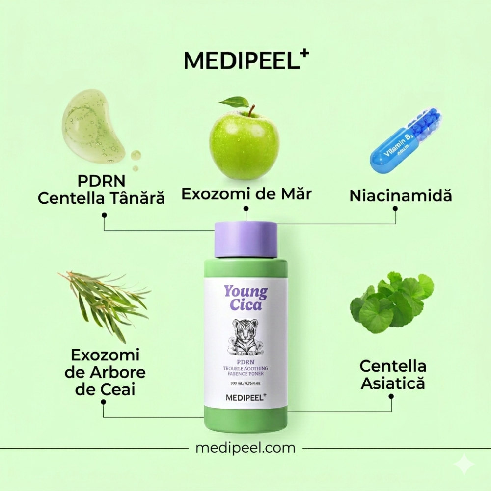 - cica (centella asiatica) ajuta la calmarea rosetii si la refacerea barierei cutanate;
