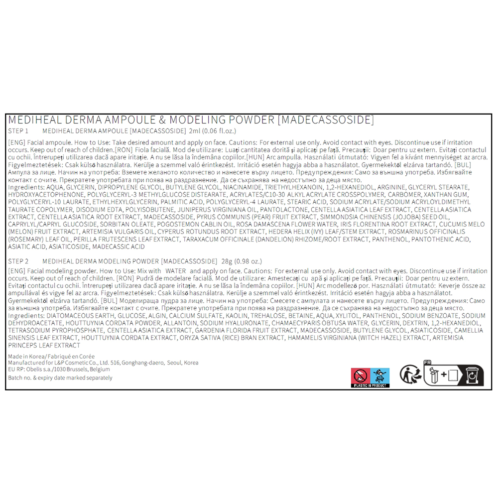 - setul conÈ›ine o ampulă concentrată cu Madecassoside È™i o pudră modeling mask, care împreună creează pe piele un strat ocluziv ce ajută ingredientele active să acÈ›ioneze mai eficient;