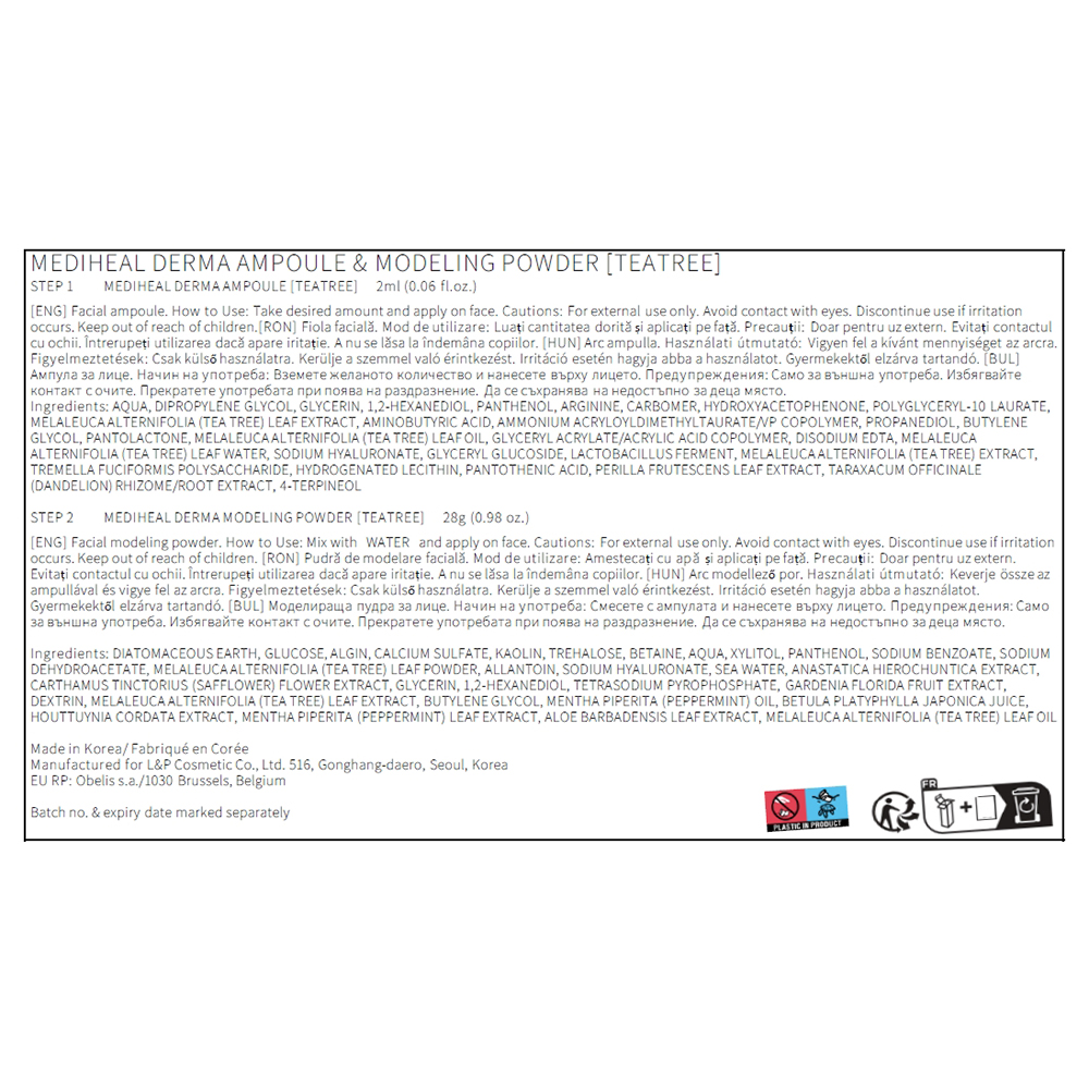 Masca faciala in doua etape, Teatree Calming Derma Modeling Pack, 28 gr + 2 ml, Mediheal [8809936742181]
