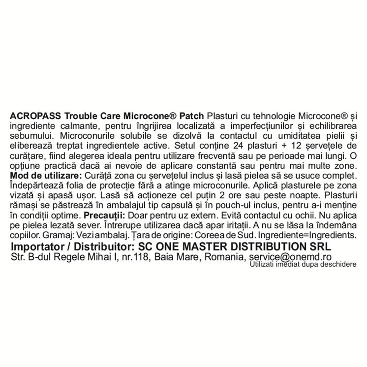 - contine 6 plasturi cu microconuri + 6 servetele de curatare.