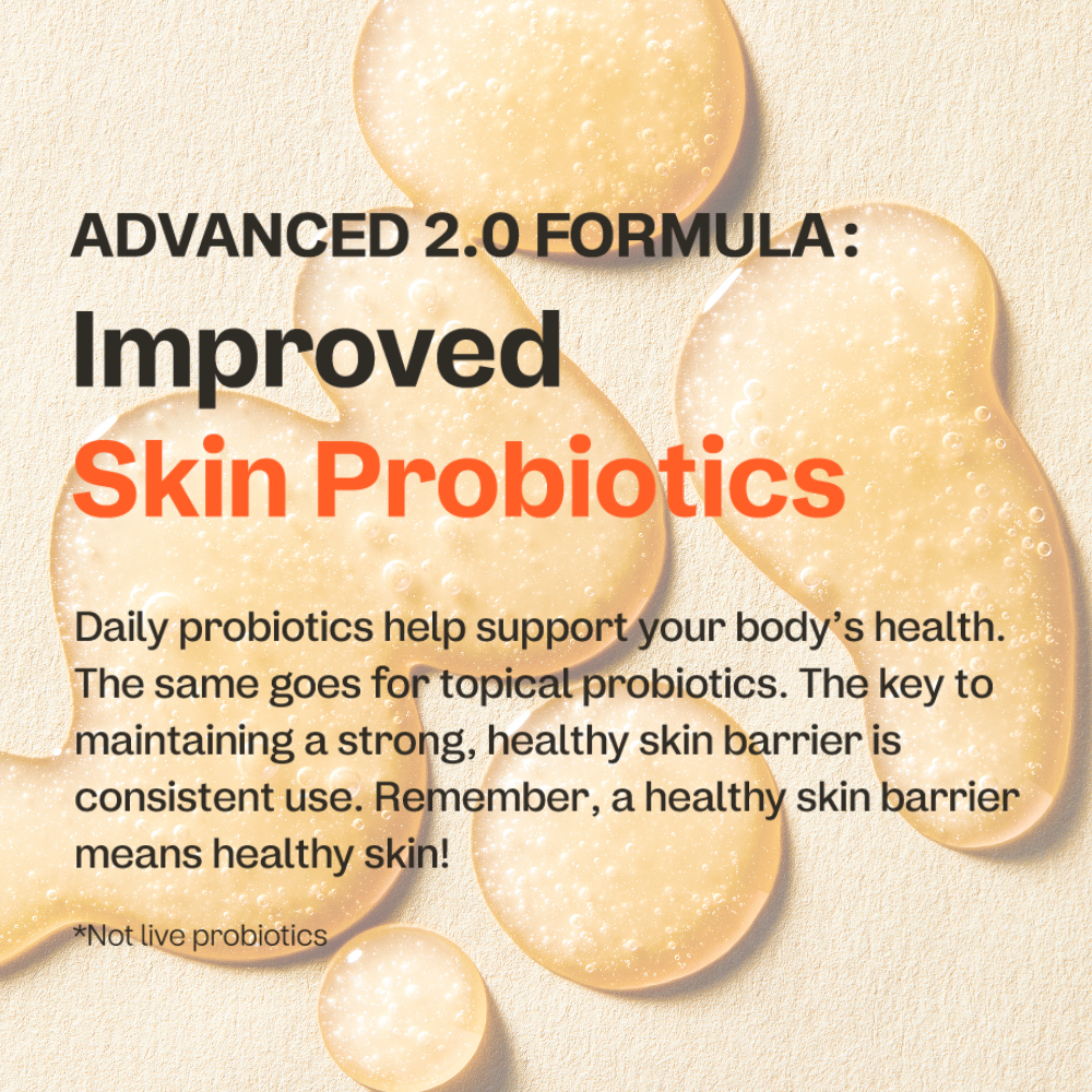 - 5 tipuri de probiotice, complex de 5 peptide (inclusiv peptide de cupru), 10 tipuri de HA, niacinamide si extracte calmante de Centella;