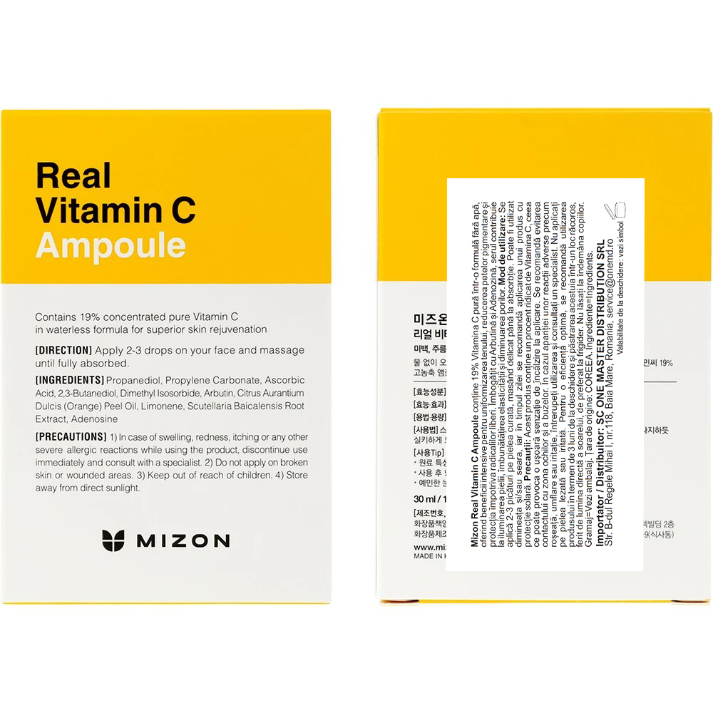 Vitamina C pura (19%) - cel mai puternic antioxidant natural, esential pentru protectia pielii si reducerea petelor pigmentare.
