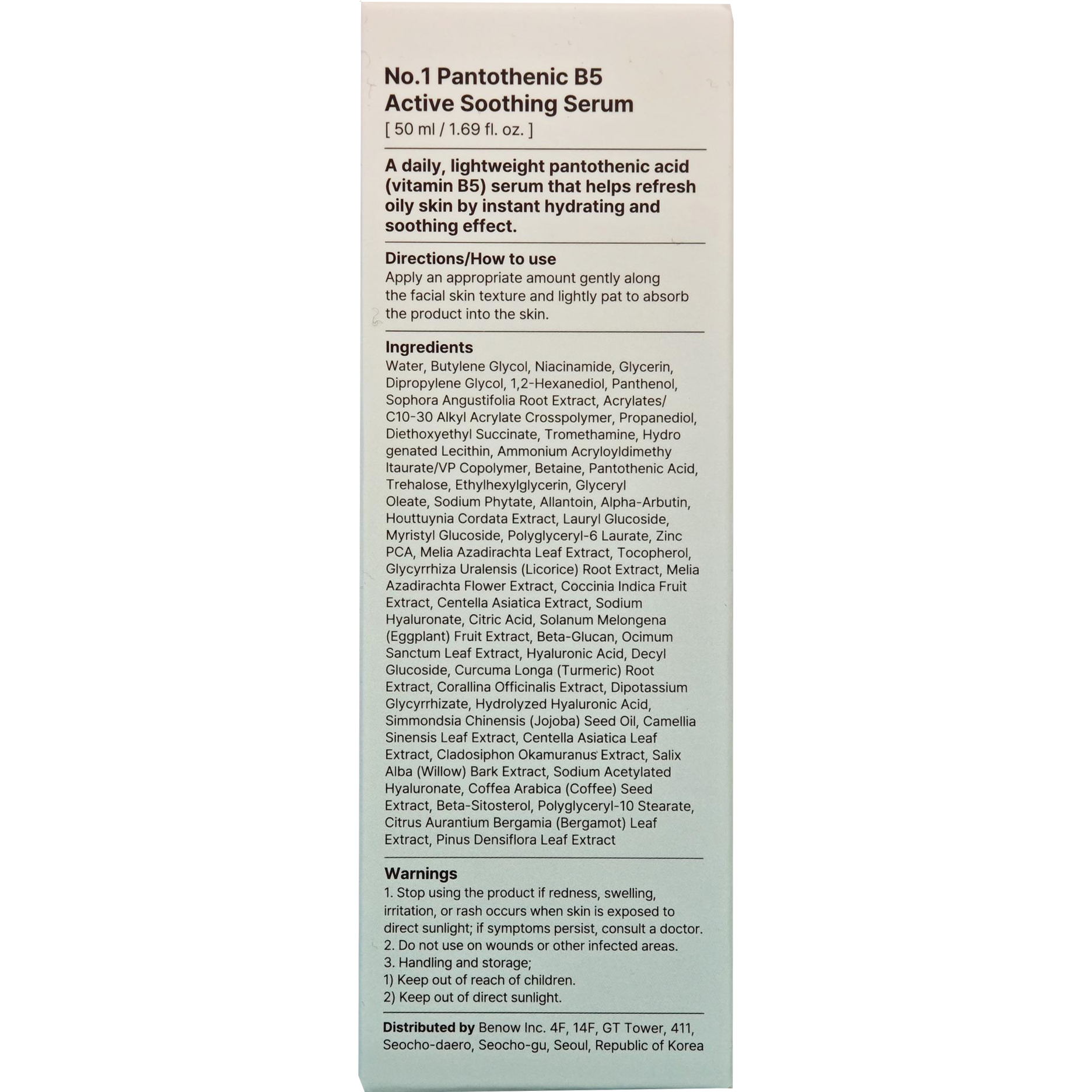 Ser hidratant si calmant pentru ten acneic No.1 Pantothenic B5, 50 ml, Numbuzin [8809652583211]