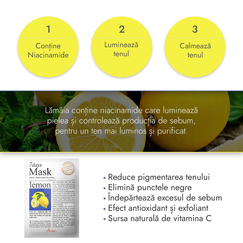 - contine niacinamide, pentru a lumina tenul obosit si pentru a controla productia de sebum pentru o piele mai stralucitoare si purificata;