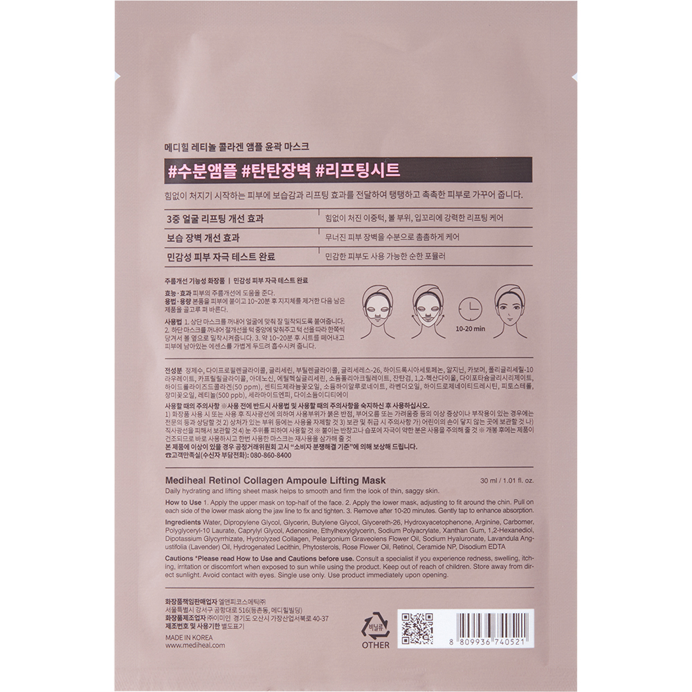 Masca tip servetel cu efect de lifting, Retinol Collagen Ampoule Lifting Sheet Mask, 30 ml, Mediheal [8809936740521]