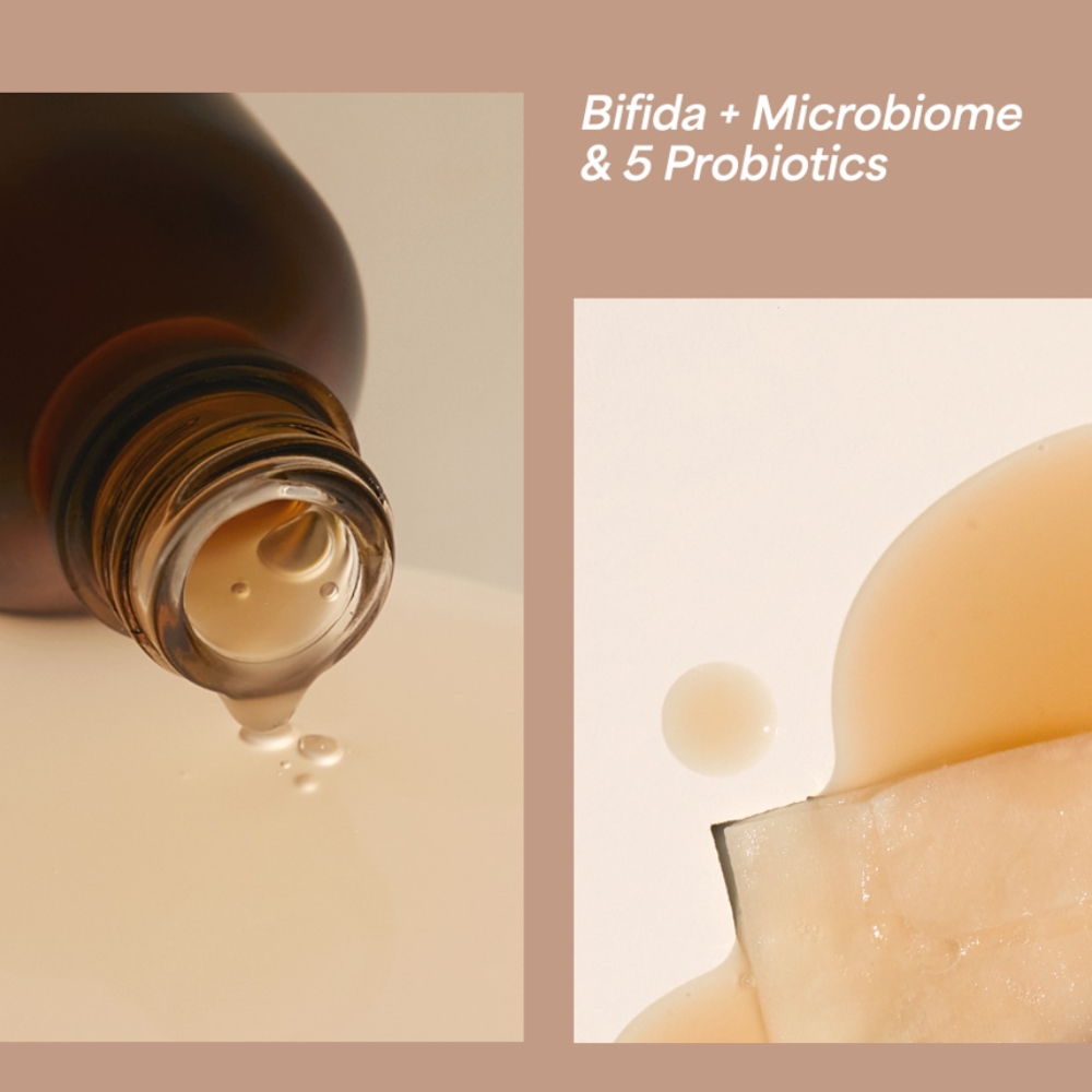 - cele 5 probiotice din compozitie (Bifida Ferment Filtrate, Lactobacillus Ferment, Lactobacillus Ferment Lysate, Lactococcus Ferment Lysate, Saccharomyces Ferment Filtrate) imbunatatesc bariera de protectie a pielii si ajuta la restaurarea tonului sau natural;