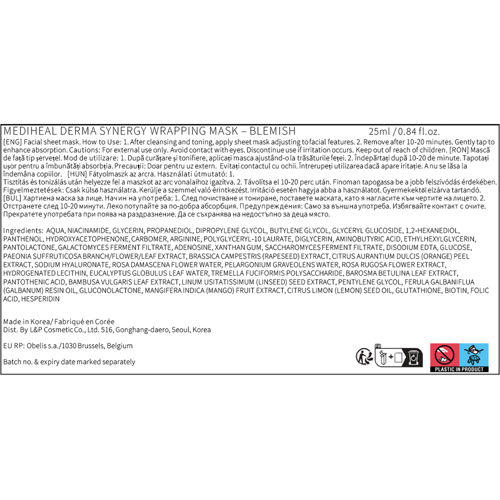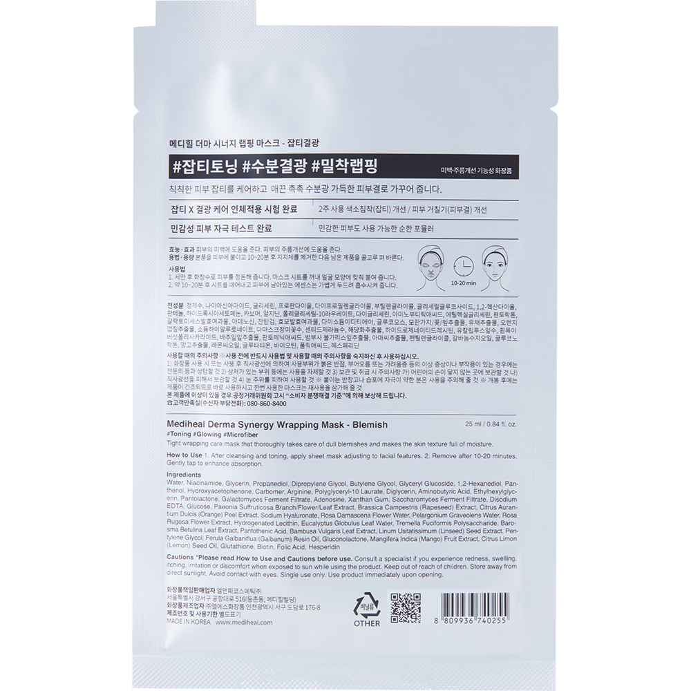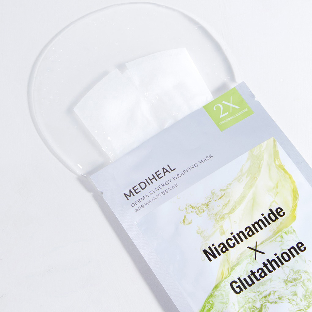 - Mediheal Derma Synergy Wrapping Mask Niacinamide x Glutathione este o masca tip servetel conceputa pentru a imbunatati aspectul petelor si al texturii neuniforme, ajutand pielea sa capete un aspect mai luminos, mai neted si mai revigorat;