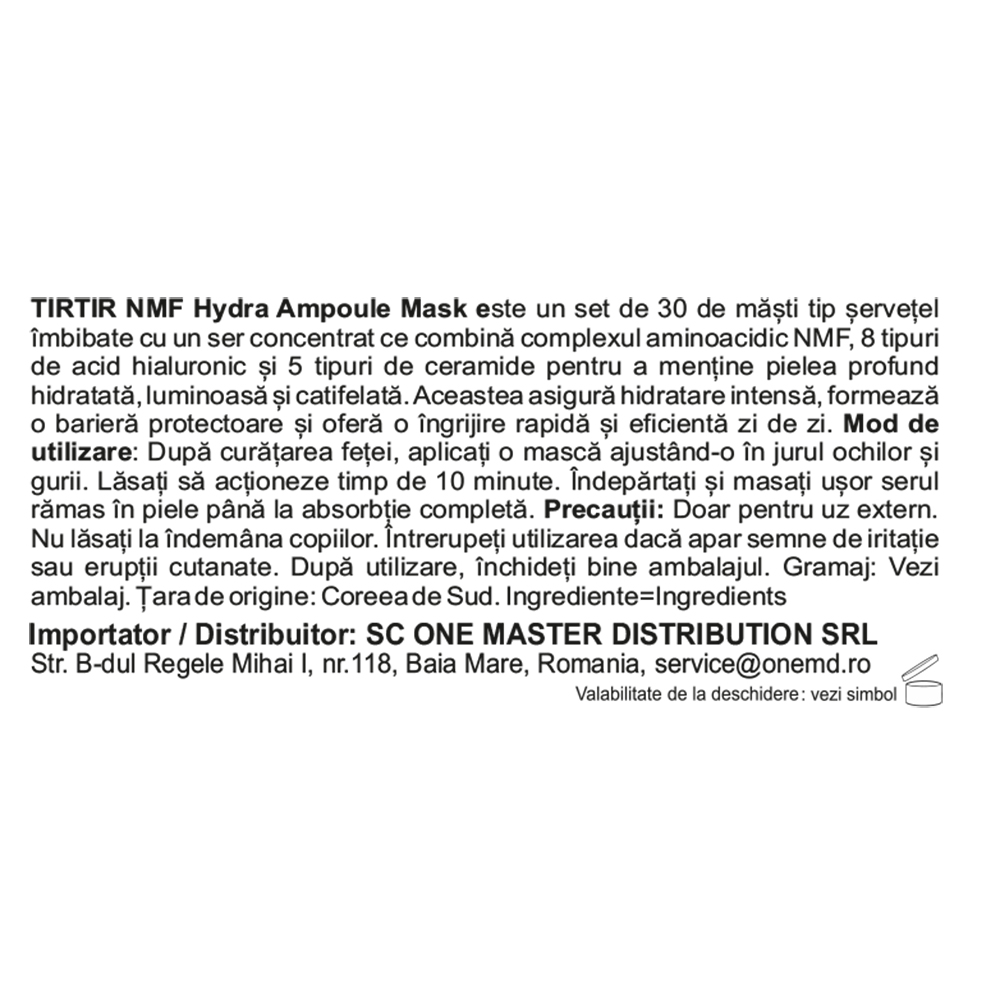 Set masti de fata cu acid hialuronic si ceramide NMF Hydro Ampoule Mask, 30 bucati, Tirtir