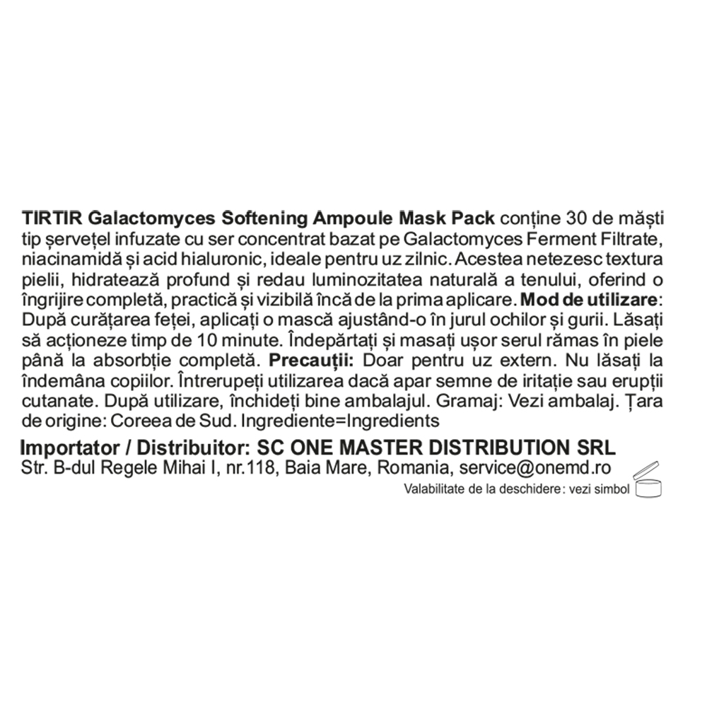 Farmacia Tei intelege importanta informatiilor prezentate in aceasta pagina si face eforturi permanente pentru a le pastra actualizate. Singura situatie in care informatiile prezentate despre Set masti de fata cu galactomyces si niacinamida Galactomyces Ampoule Mask, 30 bucati, Tirtir pot fi diferite fata de cele prezentate pe site este aceea in care producatorul/importatorul aduce modificari specificatiilor/etichetei acestuia, fara a ne informa in prealabil. In cazul aparitiei unor diferente, prevaleaza informatia de pe etichetele produsului fizic.