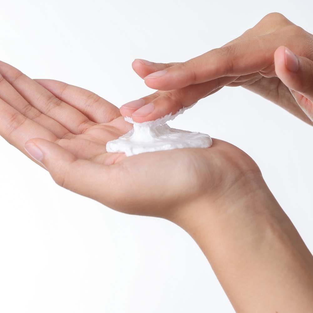 Aplicati o cantitate potrivita de produs in palme umede.