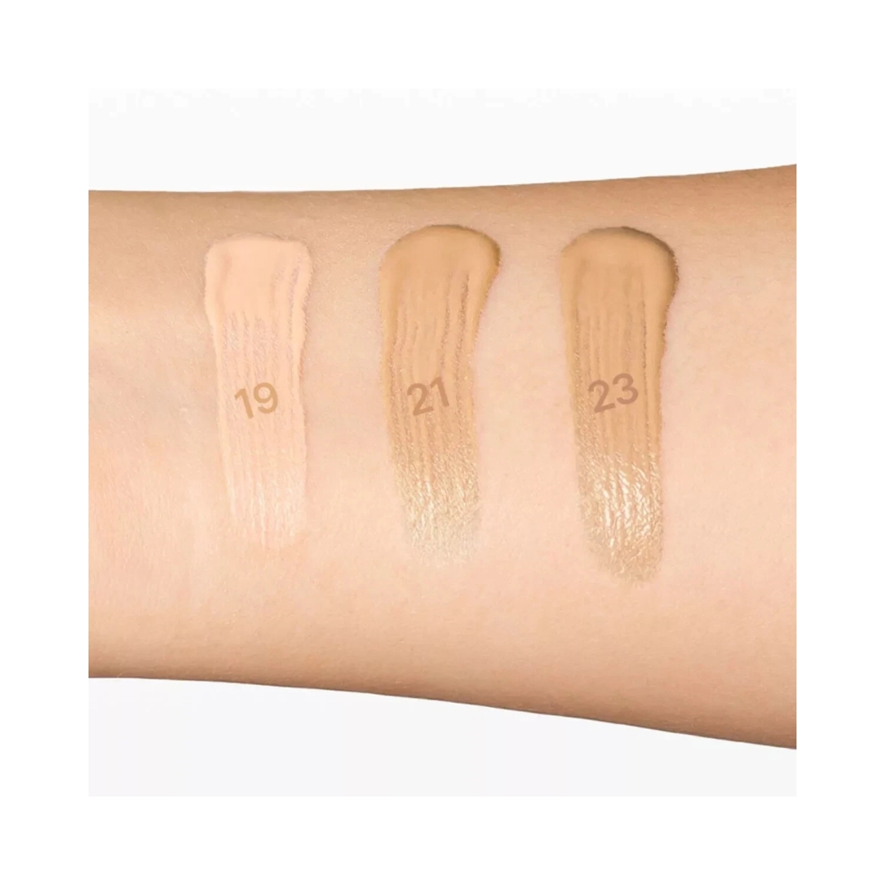 - fond de ten ce ofera un efect 3-in-1 pentru a obtine un aspect de „Glass Skin”, formula protejand in acelasi timp pielea de razele ultraviolete UVA/UVB;