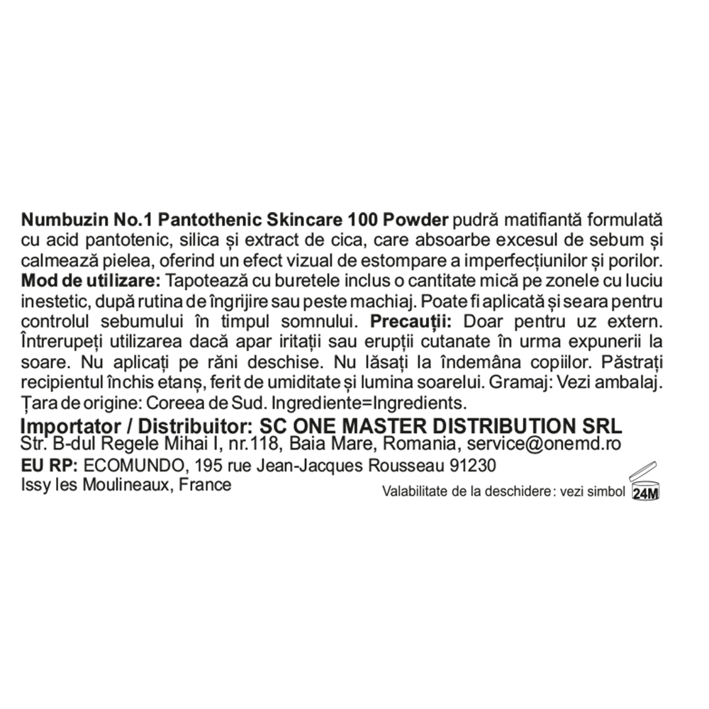 Mod de utilizare:Dupa rutina de ingrijire sau dupa aplicarea machiajului, tapotati usor pudra pe zonele cu tendinta de ingrasare sau pe cele cu textura neregulata. Produsul poate fi utilizat si inainte de culcare pentru a controla secretia de sebum din timpul noptii, prevenind astfel lipirea parului de fata in timpul somnului. Reaplicati pe parcursul zilei ori de cate ori simtiti nevoia de a reimprospata tenul si de a elimina luciul inestetic.