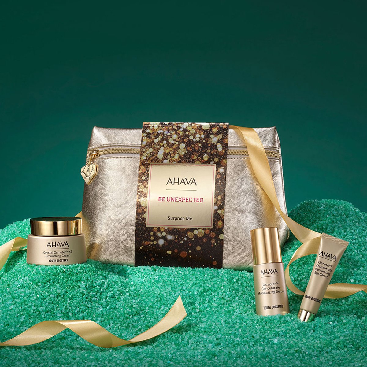 - cu un continut de Osmoter de 3 ori mai concentrat, mixul exclusiv de minerale Ahava de la Marea Moarta reduce aparitia cearcanelor si a pungilor de sub ochi pentru un aspect odihnit si proaspat al tenului;