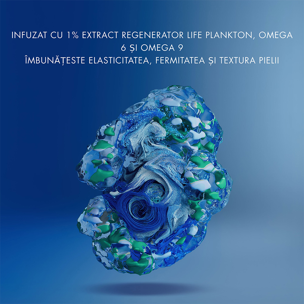 - fiind infuzat cu 1% extract regenerator Life Plankton™, Omega 6 si Omega 9, imbunatateste elasticitatea, fermitatea si textura pielii;
