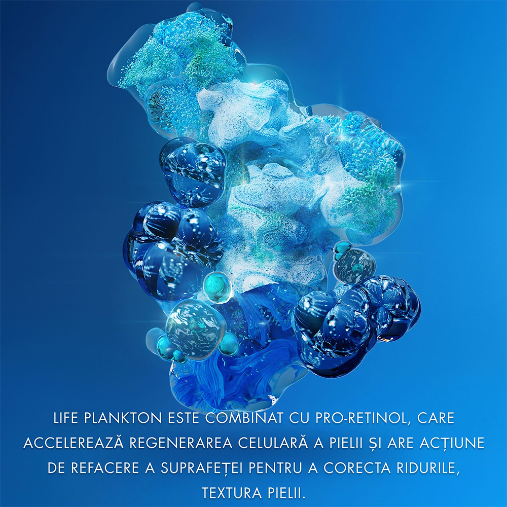 - Life Plankton™ este combinat cu Pro-Retinol, care accelereaza regenerarea celulara a pielii si are actiune de refacere a suprafetei pentru a corecta ridurile, textura pielii.