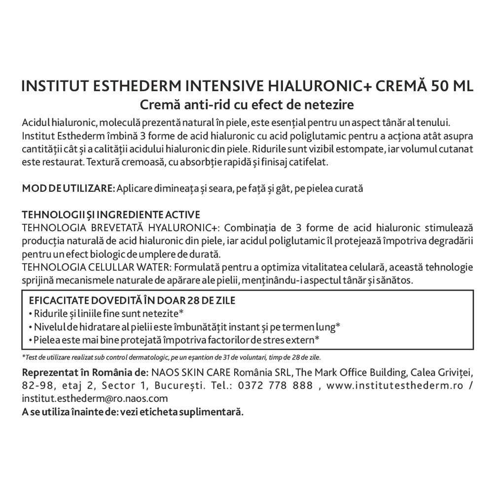 - acidul hialuronic, molecula prezenta natural in piele, este esenţial pentru un aspect tanar al tenului;