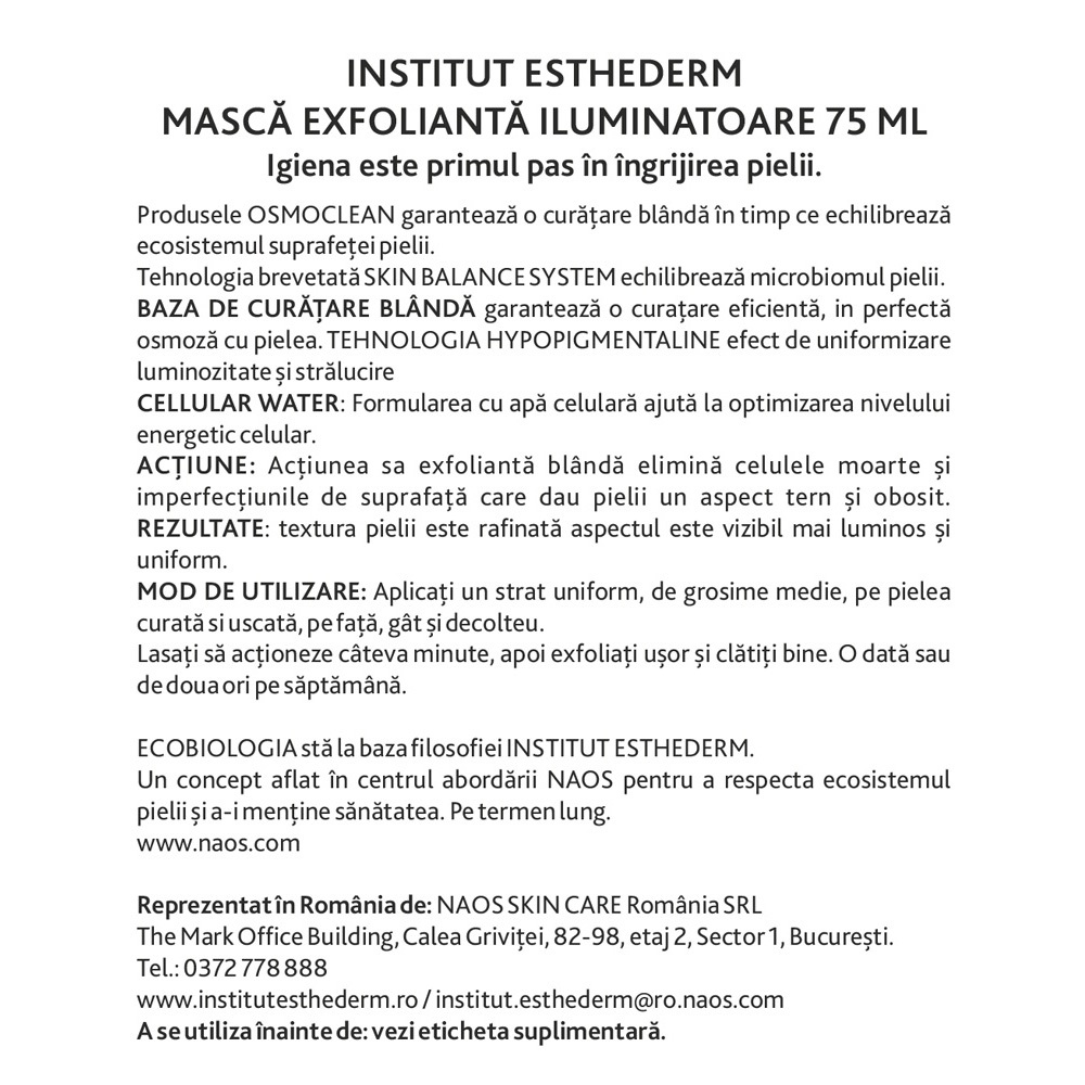 - masca exfoliantă fără granule curată pielea și îi dă un aspect uniform;