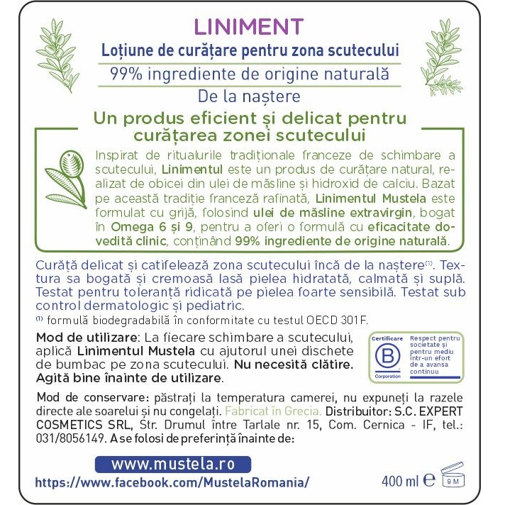 - un produs eficient si delicat pentru curatarea zonei scutecului, realizat din ulei de masline si hidroxid de calciu;