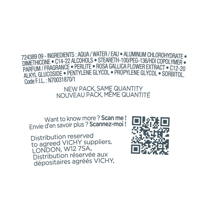 Ingrediente:Aqua / Water / Eau, Aluminum Chlorohydrate, Dimethicone, C14-22 Alcohols, Steareth-100/Peg-136/Hdi Copolymer, Parfum / Fragrance, Perlite, Rosa Gallica Flower Extract, C12-20 Alkyl Glucoside, Pentylene Glycol, Propylene Glycol, Sorbitol.