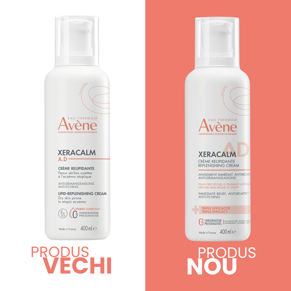 Datorită Cosmétique Stérile®, o tehnologie unică care menține produsul steril pe toată durata utilizării, și a tubului pompă perfect etanș, acest produs de îngrijire de înaltă performanță garantează o siguranță optimă și respectarea pielii și a microbiomului său. Fără conservanți, fără parfum, non-comedogenică și formulată pentru a minimiza riscul de reacții alergice, crema relipidantă XeraCalm A.D este ideală pentru pielea sugarilor, copiilor și adulților.* Din cauza uscăciunii pielii.