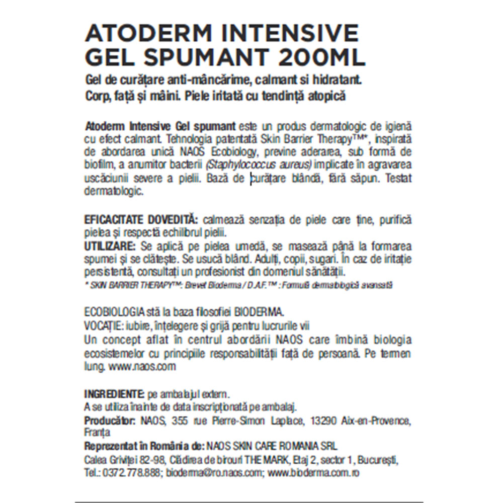 Aplicati Atoderm Intensive Gel spumant pe pielea uscata.