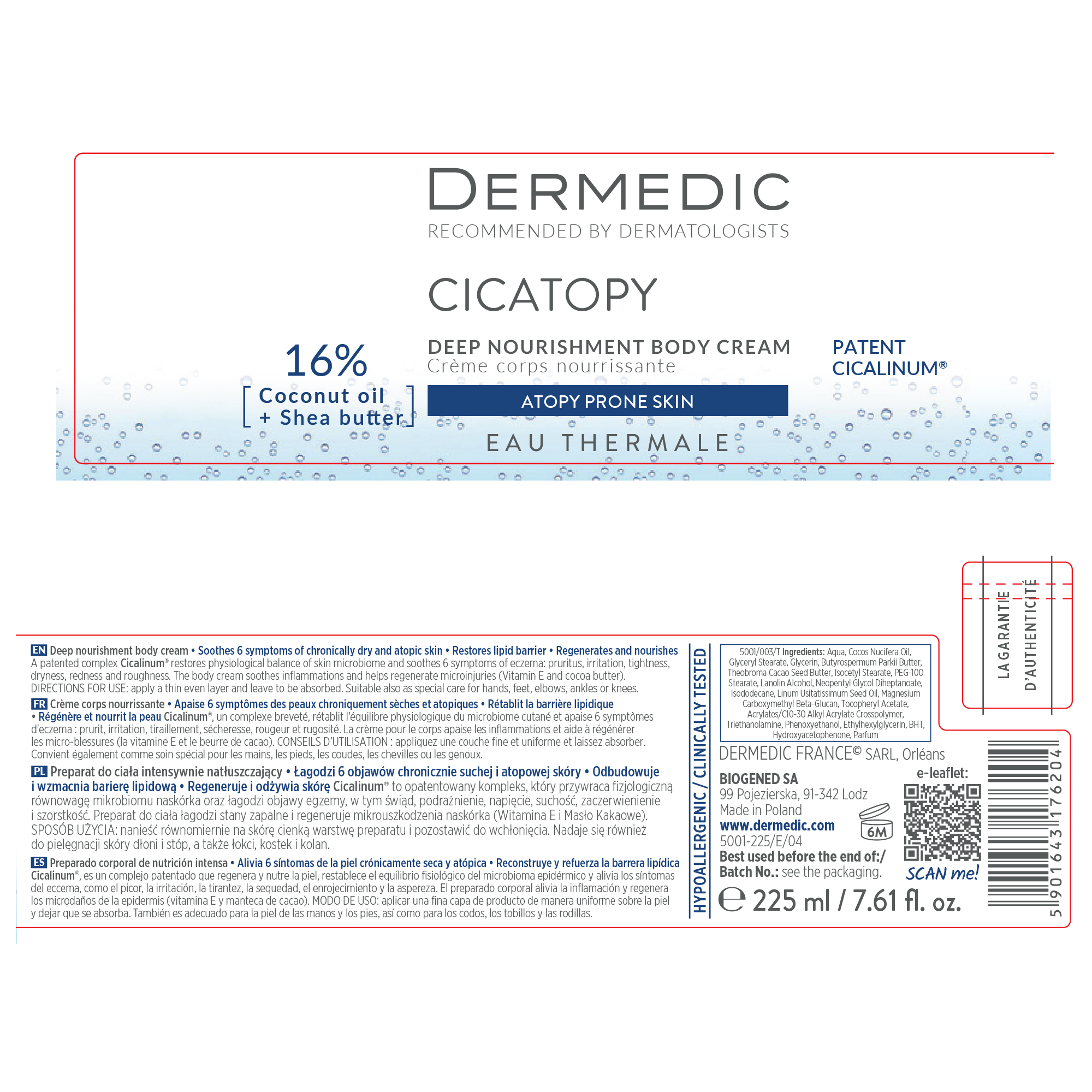 Crema de corp intens nutritiva Cicatopy, 225 ml, Dermedic
