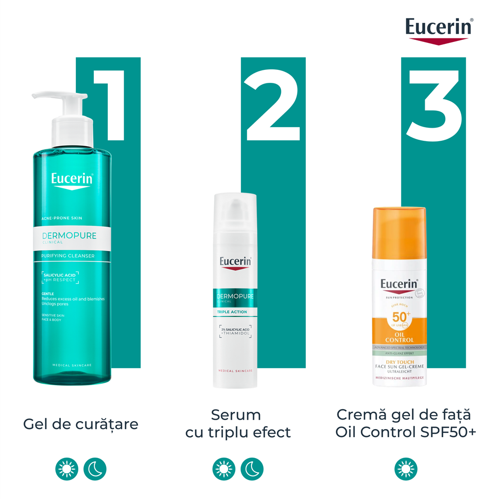 Aplica de doua ori pe zi pe pielea umeda, inainte de utilizarea serumului cu triplu efect Dermo Pure.