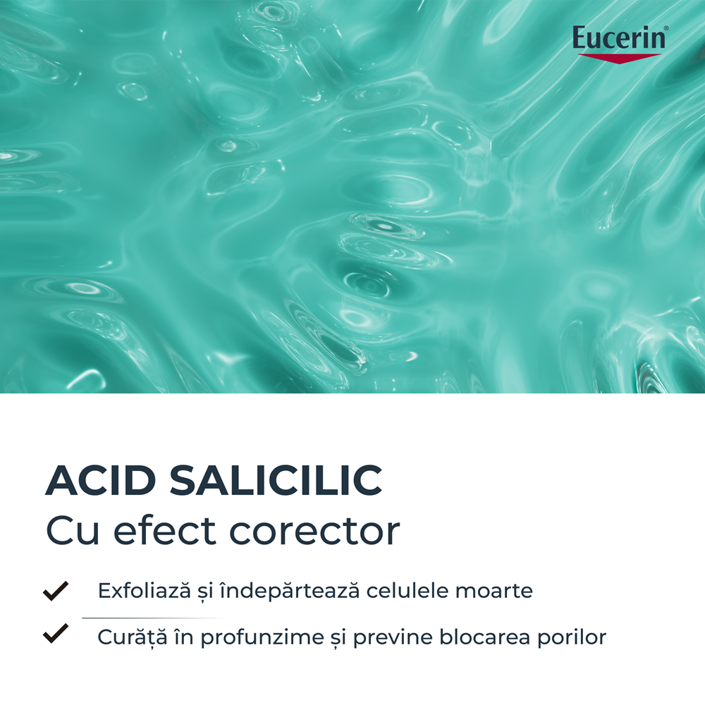 - acidul salicilic 2% exfoliaza delicat si curata porii in profunzime;