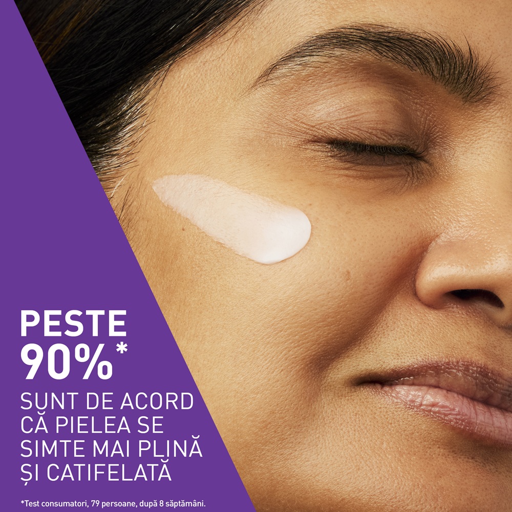 - formula cu 3 ceramide esentiale, complex de peptide si niacinamida, ofera un aspect vizibil mai ferm tenului in 2 saptamani si 48h hidratare pana la 10 straturi epidermice;