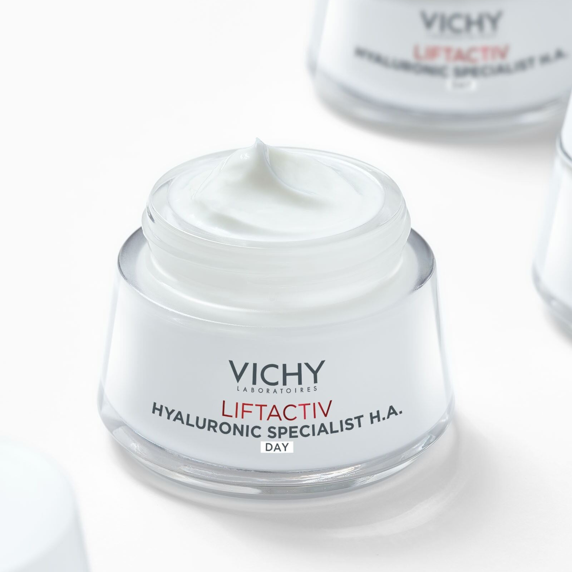 Acid hialuronic pur + 5% ramnoza + vitamina Cg, intr-o crema care restabileste nivelul de acid hialuronic din piele pentru un efect de umplere si netezire.