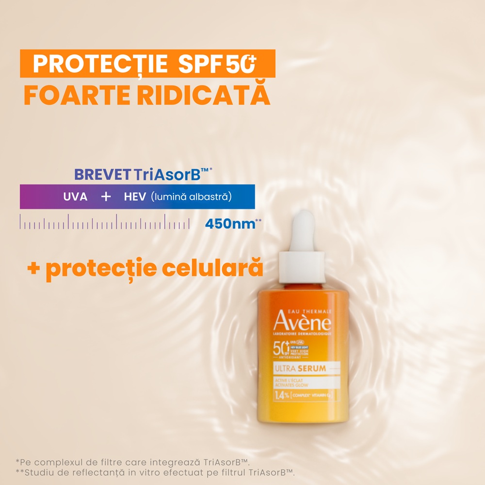 - datorita sistemului sau fotoprotector care incorporeaza filtrul inovator Triasorb, produsul ofera protectie eficienta impotriva razelor UVB, UVA si a luminii albastre HEV;