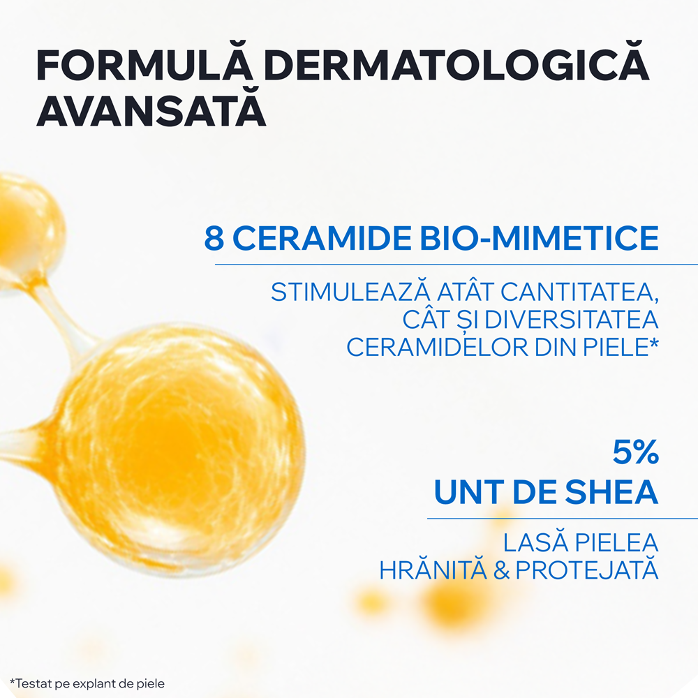 Ingrediente:Aqua (Water, Eau), Dicaprylyl Ether, Butyrospermum Parkii Butter, Cetearyl Isononanoate, Glycerin, Cetyl Alcohol, Propanediol, Steareth-2, Steareth-21, 1,2-Hexanediol, Glyceryl Behenate, Sodium Dextran Sulfate, Sodium Hyaluronate, Chlorphenesin, Polyacrylate-13, Acrylates/C10-30 Alkyl Acrylate Crosspolymer, Safflower Oil/Palm Oil Aminopropanediol Esters, Tocopherylacetate, Xanthan Gum, Polyisobutene, O-Cymen-5-ol, Polysorbate 20, Sorbitan Isostearate, Sodium Hydroxide, Polyglyceryl-10 Stearate, Triethyl Citrate, Polyglyceryl-6 Behenate, Tocopherol, Behenic Acid, Ceramide NP, Cetearyl Alcohol, Cholesterol, Glyceryl Stearate, Lactic Acid, Ceramide NS, Ceramide EOP, Ceramide AP, Sodium Cetearyl Sulfate.