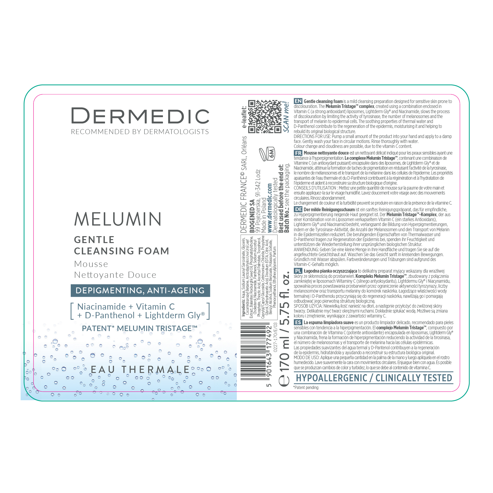 Spuma de curatare pentru ten cu pete pigmentare Melumin, 170 ml, Dermedic [5901643177492]