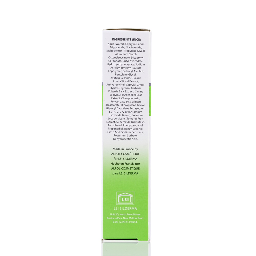 Aqua (Water), Caprylic/ Capric Triglyceride, Niacinamide, Maltodextrin, Propylene Glycol, Aluminium Starch Octenylsuccinate, Dicaprylyl Carbonate, Butyl Avocadate, Hydroxyethyl Acrilate/SodiumAcrylodimethyl Taurate Copolymer, Cetearyl Alcohol, Pentylene Glycol, Xylitylglucoside, Quassia Amara Wood Extract, Anhydroxylitol, Caprylyl Glycol, Xylitol, Glycerin, Berberis Vulgaris Bark Extract, Cynara Scolymus (Artichoke) Leaf Extract, Chlorphenesin, Polysorbate 60, Sorbitan Isostearate, Dipropylene Glycol, Glyceryl Caprylate, Tetrasodium EDTA, CI 77289 (Chromium Hydroxide Green), Solanum Lycopersicum (Tomato) Fruit Extract, Suoeroxide Dismutase, Tocopherol, Phenylpropanol, Propanediol, Benzyl Alcohol, Citric Acid, Sodium Benzoate, Potassium Sorbate, Dehydroacetic Acid.