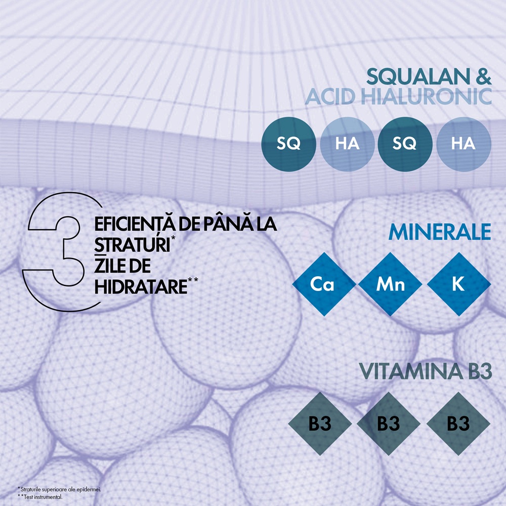 Proprietati:- imbogatita cu tehnologia Osmoskin, crema formulata cu acid hialuronic, minerale, vitamine si squalan ajuta la refacerea barierei de hidratare a pielii si menține hidratarea pana la 72 de ore;