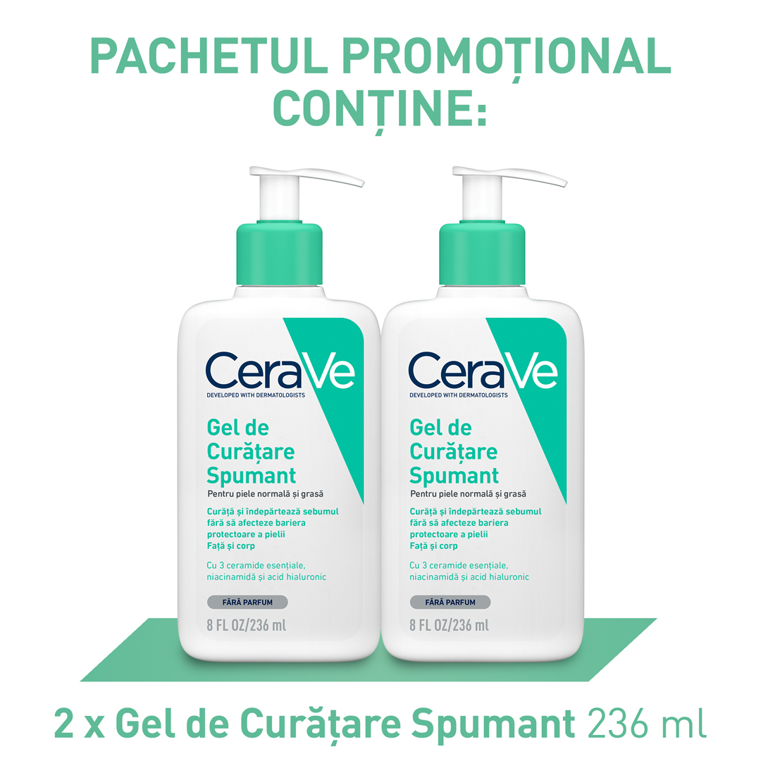 Pachet Gel de curatare spumant pentru piele normal-grasa, 236 ml + 236 ml, CeraVe [5907882031076]