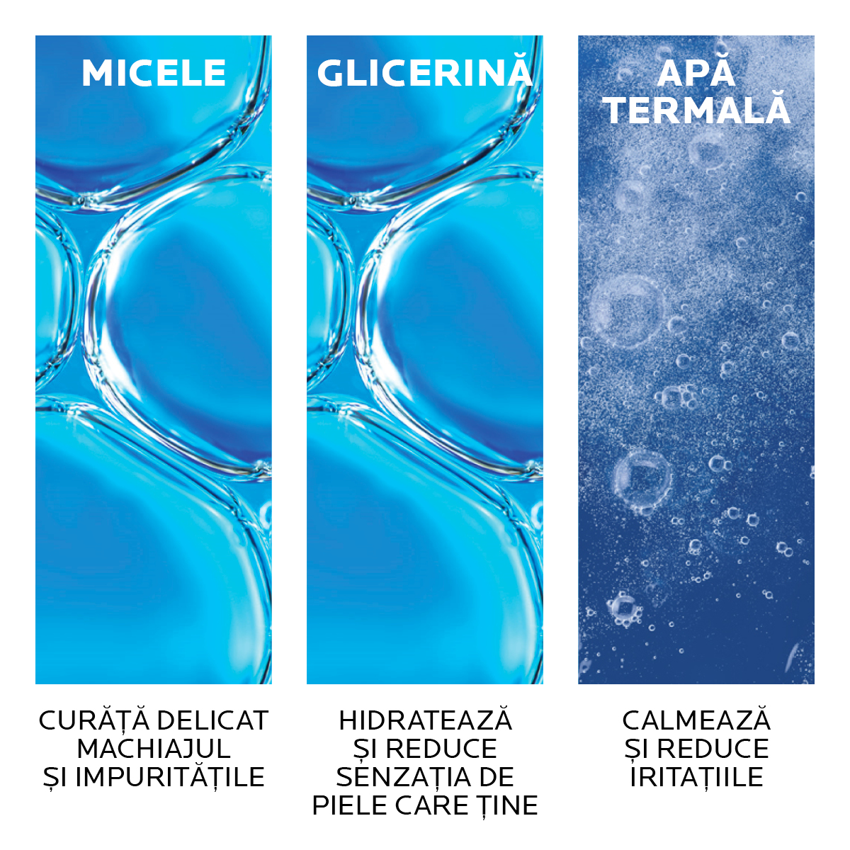 - eficacitate ridicată datorită asocierii dintre puterea micelelor și efectul hidratant al glicerinei.