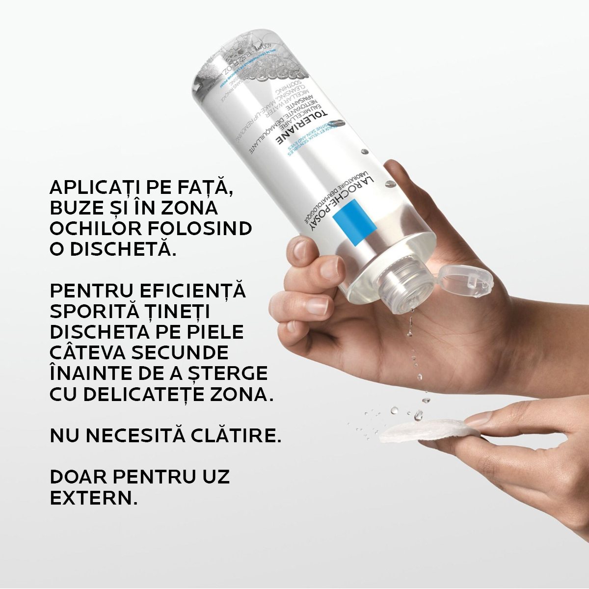 - demachiere și curățare perfectă pentru față, ochi și buze, respectând echilibrul fiziologic al pielii sensibile;