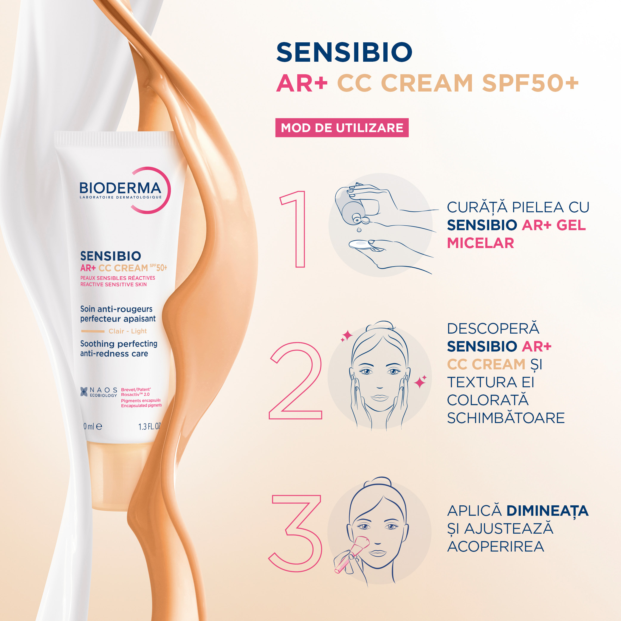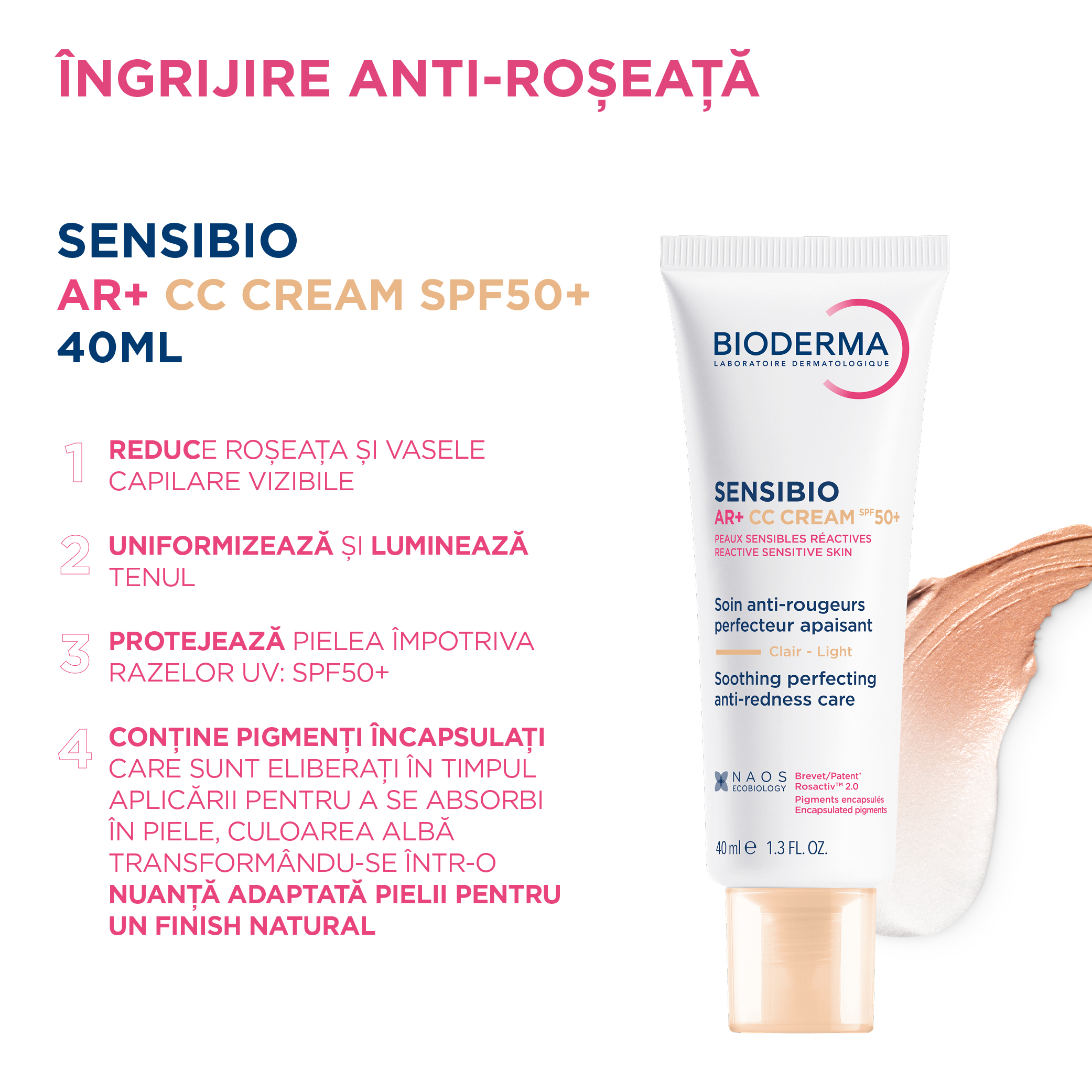 - ofera ingrijire completa si specifica pentru pielea reactiva cu roseata;