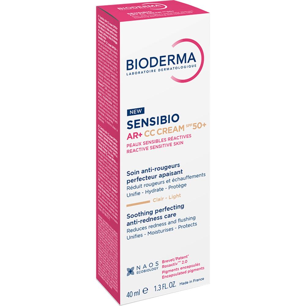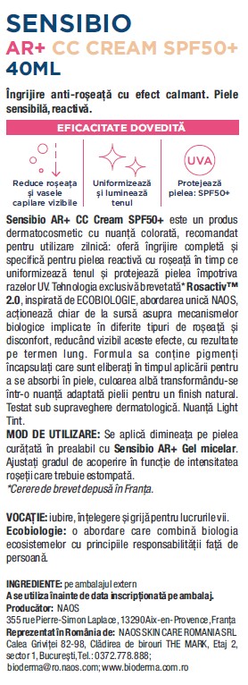 Crema CC pentru piele sensibila cu factor de protectie SPF50+, nuanta Light Tint Sensibio AR+, 40 ml, Bioderma