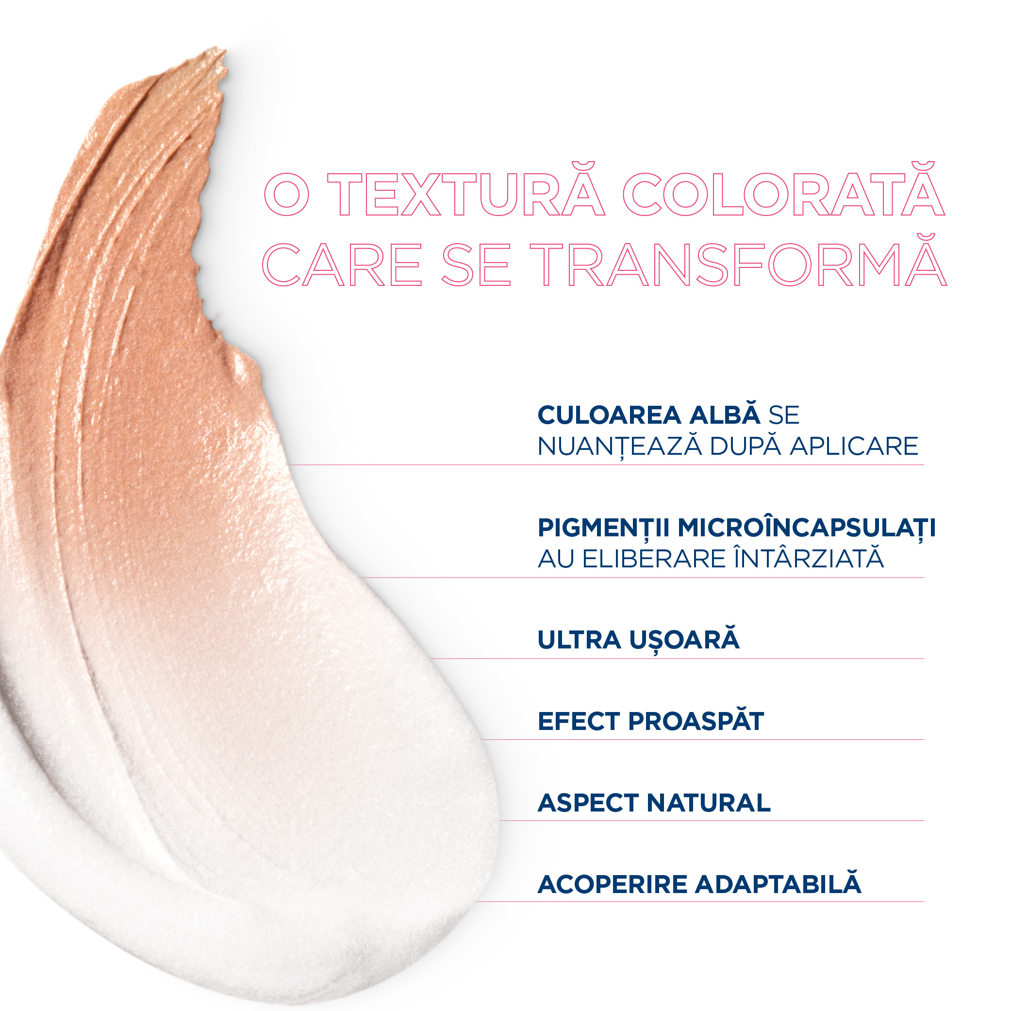 - culoarea alba se transforma intr-o nuanta adaptata pielii pentru un finish natural;