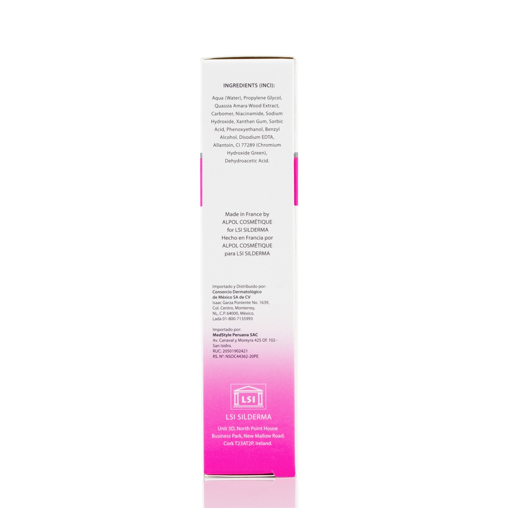 Ingrediente:Aqua (Water), Quassia Amara Wood Extract, Propylene Glycol, Niacinamide, Carbomer, Xanthan Gum, Sorbic Acid, Phenoxyethanol, Benzyl Alcohol, Disodium EDTA, Sodium Hydroxide, Allantoin, Chromium Oxide Green (CI 77289) .